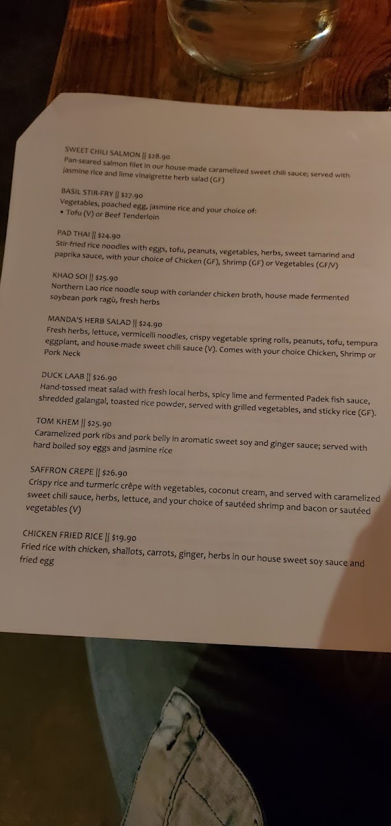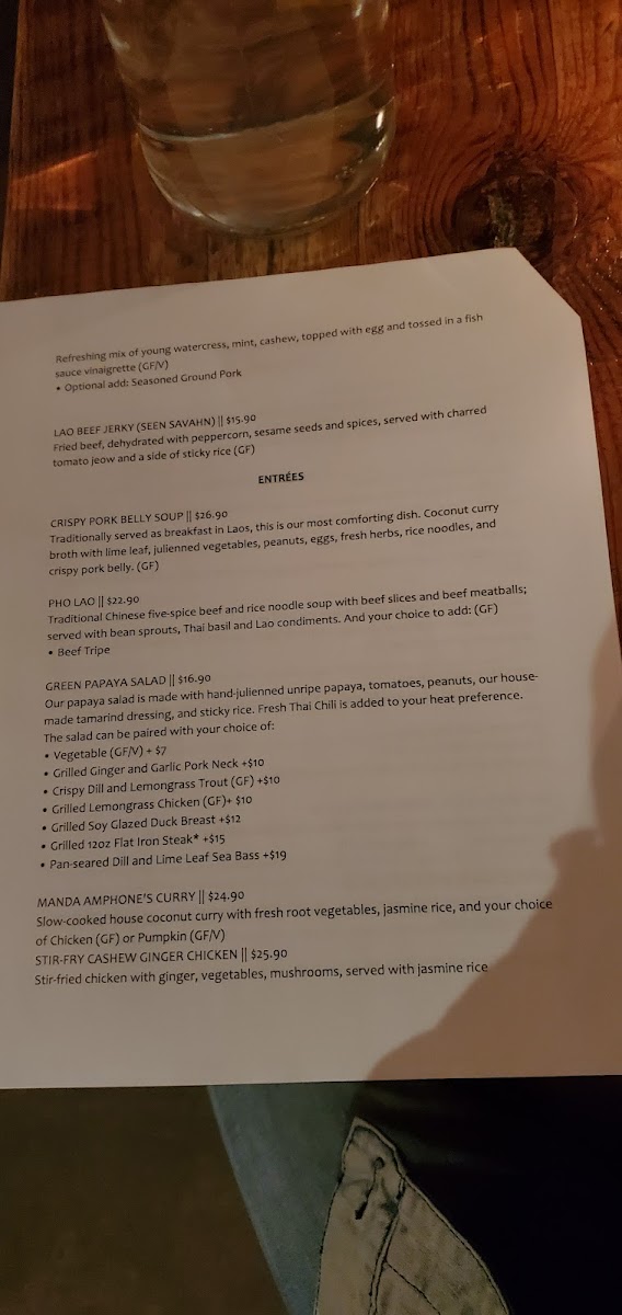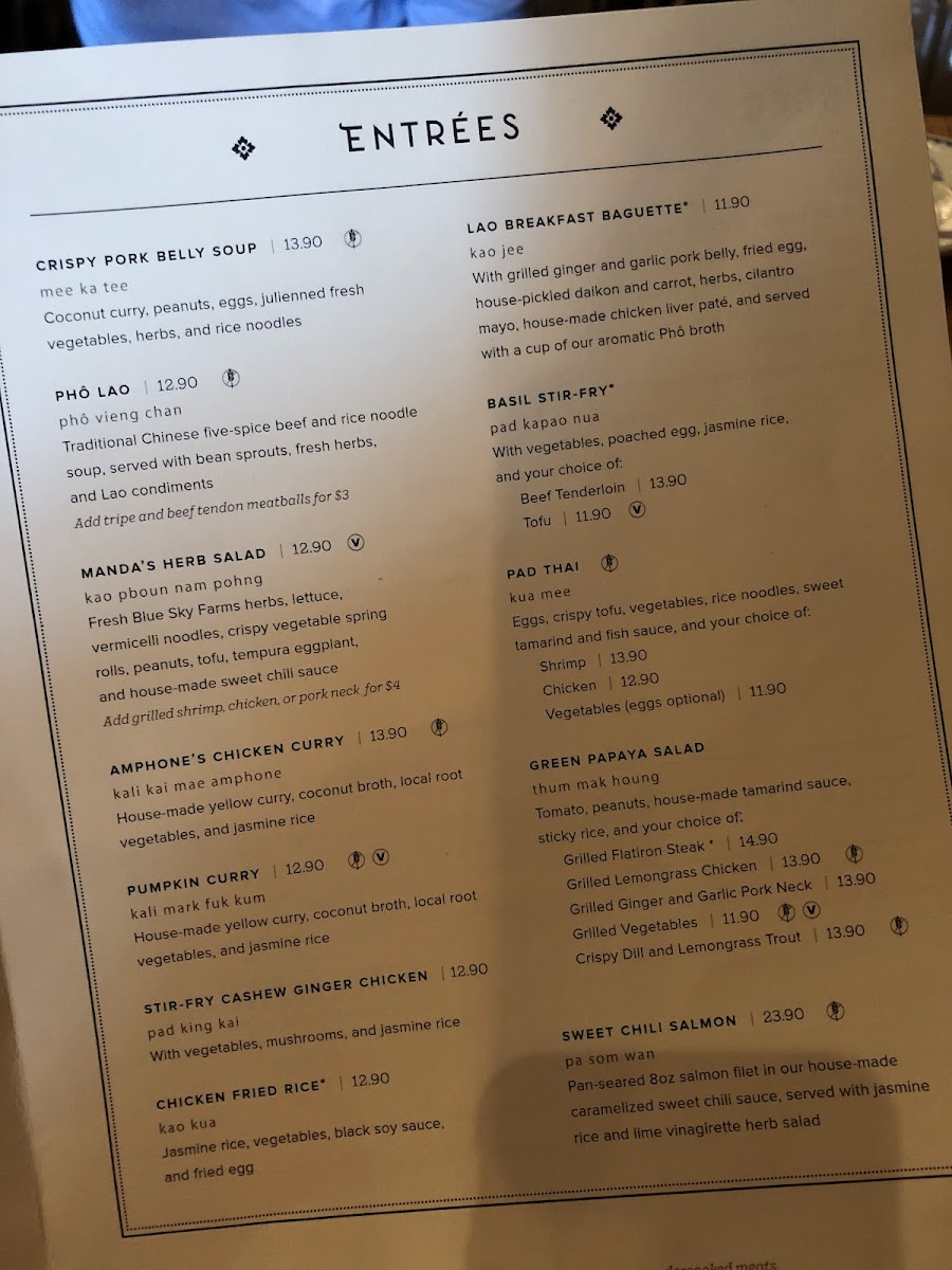 Traditionally served as breakfast in Laos, this is our most comforting dish. Coconut curry broth with lime leaf, julienned vegetables, peanuts, eggs, fresh herbs, rice noodles, and crispy pork belly. • Allergen Information: Contains eggs and peanuts. • Gluten-Free.